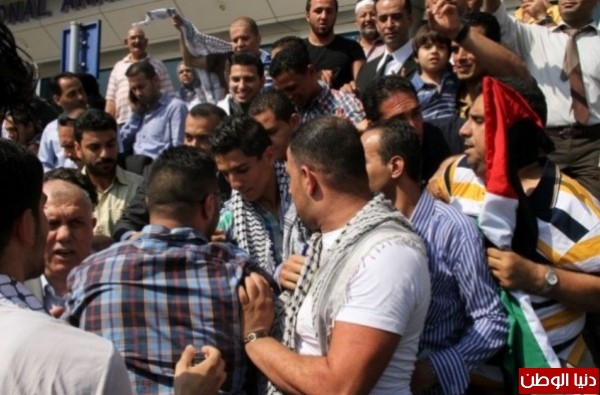 ورفع المستقبلين شعارات واعلام فلسطين أمام بوابة معبر رفح البري لاستقبال سفير الشباب محمد عساف وسط حضور اعلامي كبير حيث من المتوقع ان يصل عساف خلال الساعات المقبلة إلى قطاع غزة.
