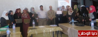 وفي ختام التخريج تم توزيع شهادات التخرج على المشاركات ، كما قدمت المربيات شهادات تقديرية لمؤسسة الرؤيا العالمية ومديرية التربية والتعليم وللمدرب باسم حسون .