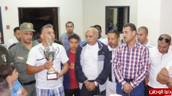 وفي ختام اللقاء الأخوي توجه الفريقين صوب المقاطعه مرة ثانية لتناول وجبة العشاء على شرف قيادة الأمن الوطن وسط حفاوة إستقبال رائعه قام خلالها قدامى تفاهم الأمن الوطني وطولكرم ممثلا بالحارس منار الخولي بتقديم كاس الفوز كأس الشهيد العقيد عبد الله كامل تقدير ا لروحه الطاهرة الكأس لذوي الشهيد تسلمه شقيقه عنان كامل ومحمد كامل في لفته رائعه من لاعبي تفاهم الأمن الوطني وقدامى طولكرم والذين شكروا بدورهم كل من شارك وساهم في تشريف روح المرحوم الشهيد عبد الله كامل .