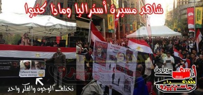 قال الناشط السياسى اشرف حلمى من استراليا فى اجواء ممطره ملبدة بالغيوم نظمت الجالية المصرية الاسترالية بأستراليا