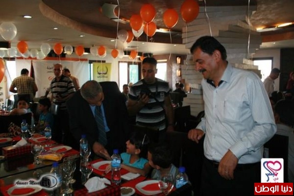 عاش أطفال أيتام في نابلس أمس، ساعات من الفرح والسرور شاركهم فيها عدد من الوزراء والمسؤولين خلال الحفل الذي نظمته جمعية التضامن الخيرية بالتعاون مع مطعم ومقهى "طلة زودياك".