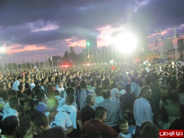 صور وفيديو..بحضور 40 ألف فلسطيني تهافتوا وتسلقوا أعمدة الكهرباء لمشاهدة "محبوب العرب" عسّاف يغني "علّي الكوفية" بجوار ضريح ياسر عرفات