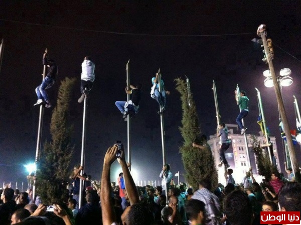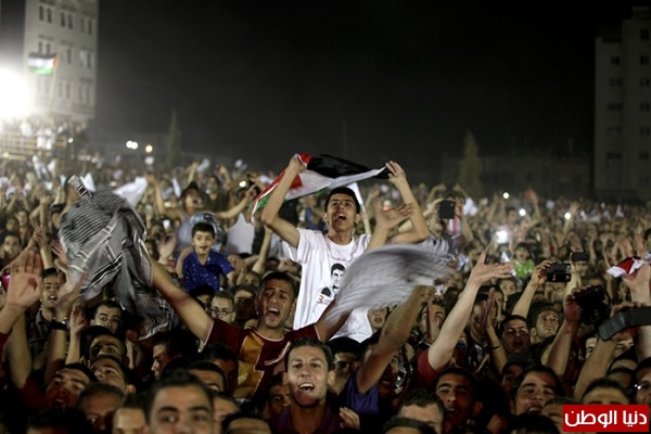 رقص آلاف الفلسطينيين، ليل الاثنين، على أنغام أغنية "علي الكوفية" التي أداها الفلسطيني محمد عسّاف الحائز لقب "محبوب العرب" في برنامج "أراب آيدول"، في الساحة المحاذية لضريح الرئيس الفلسطيني الراحل ياسر عرفات، في مقرّ الرئاسة الفلسطينية.