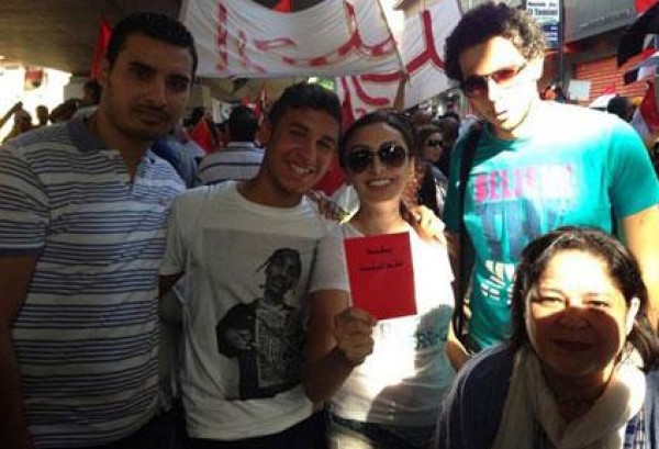 وعبّرت عن فرحتها لمعاملة الثوّار لها في المسيرة وفي ميدان التحرير، والحبّ الذي شعرت به وسط الناس.