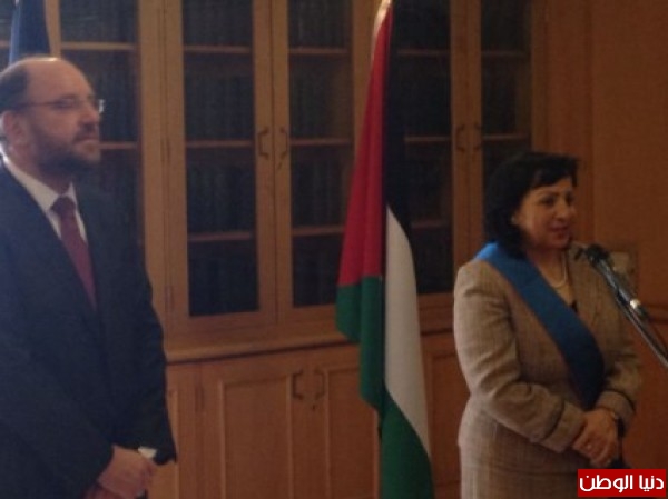 وبعد إنتهاء الإجتماع قام معالي وزير الخارجية بمرافقة سعادة السفيرة الى مكان الحفل حيث أشاد خلال كلمته بعطاء سفيرة دولة فلسطين لدى تشيلي و عملها الدؤوب في خدمة دولة فلسطين ودورها المميز في تقارب الحكومتين و الشعبين كما وعبر عن مدى عمق العلاقات بين البلدين حكومة وشعباً وأضاف بأن العلاقات الفلسطينية التشيلية تتجاوز العلاقات الدبلوماسية حيث ان تشيلي تحتضن أكبر جالية فلسطينية خارج الوطن العربي، كما وتحدث معالي الوزيرعن بعض الإنجازات التي حققتها السفيرة لتعزيز أواصر الثقة والتعاون بين البلدين، مشيراً الى إعتراف بلاده بدولة فلسطين على حدود الرابع من حزيران الى جانب تصويتها وتبنيها عضوية فلسطين المراقبة في الأمم المتحدة.