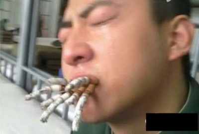 يتبع الجيش الصيني طريقة قاسية جدا على جنوده لإجبارهم على الإقلاع عن التدخين تبدأ بإجبارهم لكل مدخن على تدخين 10 سجائر مرة واحدة رافعا يده أمامه لكي لا يبعد السيجارة عن فمه ومن ثم يجبرونهم على شرب كأس مكون من تبغ السجائر والثوم.