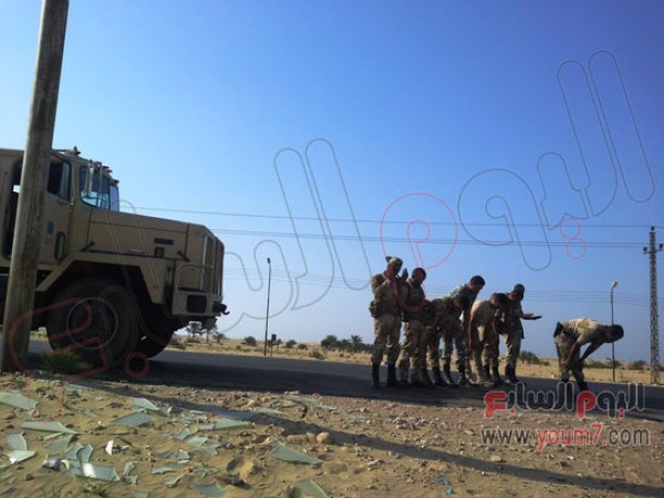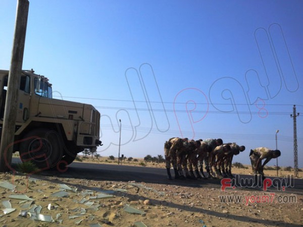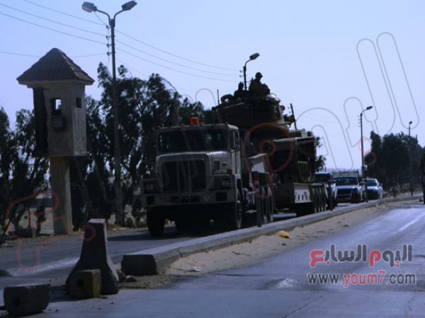 ورصدت كاميرا "اليوم السابع" وصول التعزيزات وسط فرحة الجنود والذين أدو الصلاة جماعة عند وصولهم مشارف مدينة العريش ثم واصلوا انطلاقهم إلى مدينة العريش.