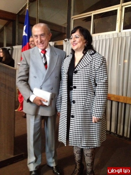 وفي يوم أخر وإستثنائي كرم مجلس الشيوخ سفيرة دولة فلسطين لدى جمهورية تشيلي في جلسه خاصة واستثانية لم تعقد سابقاً لتكريم شخصية أجنبية ابدعت في خدمة وطنها وشعبها فكان التكريم مستحق وكلمات رائعة من سعادة النواب على اختلاف توجهاتهم الحزبية، حيث يمكن القول ان سعادتها ومن خلال عملها وتواصلها وحدت اليسار واليمين فيما يتعلق بقضية فلسطين.