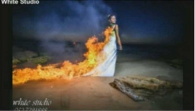 قرر زوجان أن يكون عـُرسهما غير تقليدي، حيث قام العريس في نهاية حفل الزفاف باصطحاب عروسه إلى الشاطئ، وأضرم النيران عمداً في فستانها وهي ترتديه، من ثم هرعت هي لإطفائه داخل مياه البحر.