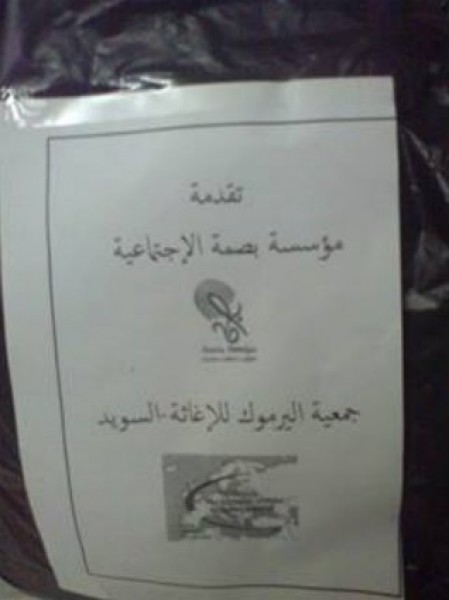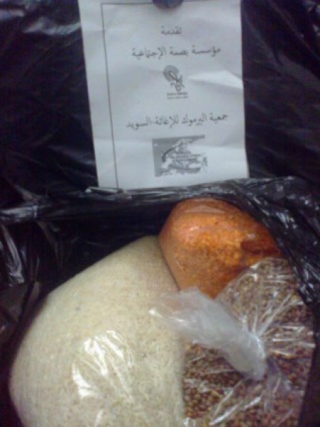 وقد تم التعاون في هذا الموضوع مع مؤسسة بصمة الاجتماعية في داخل سوريا, و من دفعة المساعدات المالية الاولى تم توزيع مساعدات السلة الغذائية في مخيم اليرموك ومن الدفعة الثانية سنقوم بتجهيز مولدات الكهرباء لانارة المخيم. نرفق بعض الصور لهذا العمل المتواضع.