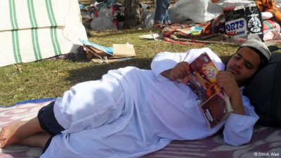 طائرة عسكرية تحلّق فوق أنصار مرسي المتظاهرين أمام مدينة الإنتاج الإعلامي