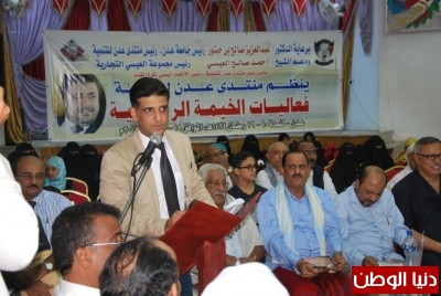 اختتم مساء الخميس الموافق26/يوليو/2013م منتدى عدن للتنمية فعالية الخيمة الرمضانية برئاسة الأستاذ الدكتور/عبدالعزيز صالح بن حبتور رئيس جامعة عدن، رئيس منتدى عـدن للتنمية وبدعم الشيخ / احمد صالح العيسي رئيس الاتحاد اليمني لكرة القدم رئيس مجلس إدارة مجموعة العيسي نائب رئيس منتدى عدن للتنمية والتي تشمل مختلف الفعاليات الثقافية والتوعوية .
