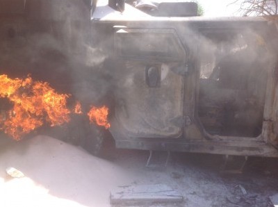 قالت مصادر مطلعة وشهود عيان، إن مدرعة تابعة للجيش اشتعلت فيها النار جراء استهدافها بقذيفة صاروخية من قبل العناصر الإرهابية التى هاجمت الشيخ زويد لحظة أذان المغرب اليوم