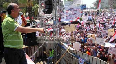 البلتاجي يستغيث من محاولات قوات الشرطة فض اعتصام "رابعة العدوية"