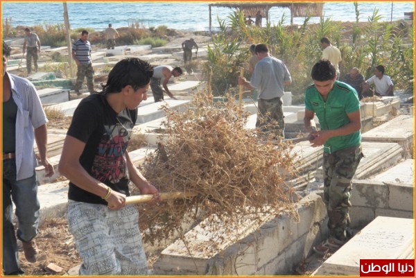 حركة فتح تنظف مقبرة مخيم الرشيدية