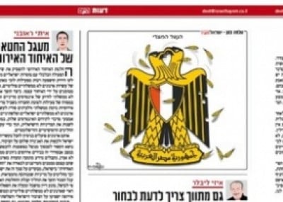 صحيفة اسرائيلية تنشر كاريكاتيرًا لنسر العلم المصري وقد اخترق الرصاص جناحيه