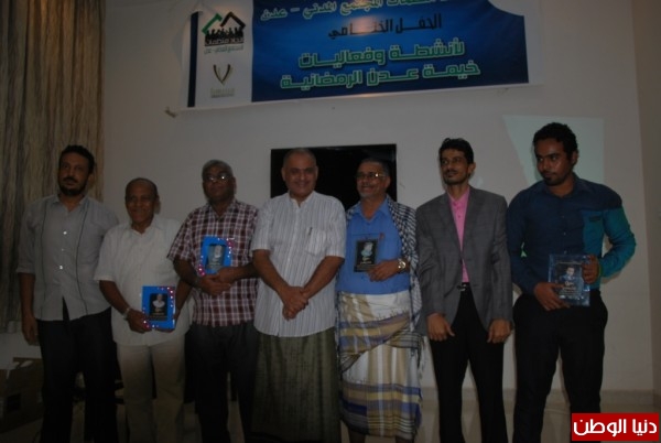 وتطرق الحفل الختامي الى فقرة التكريم الذي مقدمه من اتحاد منظمات المجتمع المدني عدن حيث كرم مجموعه من مدراء عموم بمحافظة عدن والجمعيات المشاركة والإعلاميين والصحفيين وأيضا الطلاب المشاركين في الخيمة الرمضانية