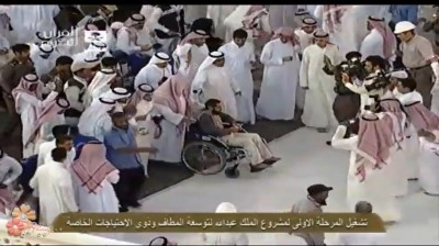 بالفيديو: الشيخ السديس يدفع عربة معاق في افتتاح جسر المطاف الجديد