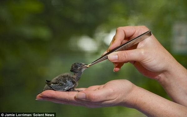 قررت مستشفى بريطانية خاصة بالحياة البرية ورعاية الحيوانات والطيور أن تستخدم طريقة مبتكرة لإطعام طائر صغير سقط من عشه الذي كانت ترعاه أمه فيه.