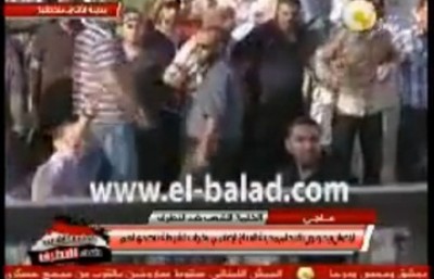 قام مئات من انصار الرئيس المعزول محمد مرسى بالتمركز امام بوابة 4 لمدينة الانتاج الاعلامى، وبالركض خلف سيارة لقوات الداخلية التى كانت تقل اثنين من العساكر، وانهالوا عليها بالضرب بالعصيان.