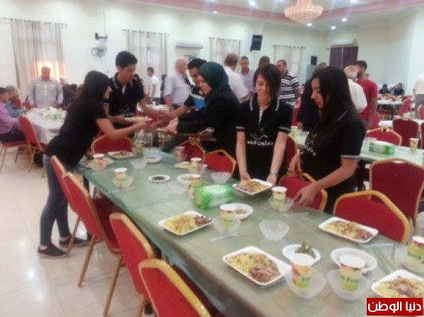 الخير " ابناء الشهداء والمتطوعين من طلبة الجامعة العربية الامريكية ووفد من الداخل الفلسطيني على مائدة افطار وامسية رمضانية مميزة تخللها توزيع عشرات الهدايا والجوائز على الاطفال والعائلات المشاركة وذلك في قاعة "الروزنا " بجنين وبدعم من مطعم "اوتار" وبالتنسيق مع التجمع الوطني لاسر الشهداء في المحافظة وبحضور نائب المحافظ عبد الله بركات ومحمد كنعان رئيس الحزب القومي العربي ومدير التجمع الوطني لاسر الشهداء في المحافظة احمد القسام وممثلي عدة مؤسسات وفعاليات .