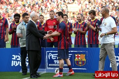 أشاد الرئيس الاسرائيلي "شمعون بيرس" أمس بنجم كرة القدم ليونيل ميسي وزملائه في نادي برشلونة، ووصفهم «برسل السلام» خلال زيارتهم القصيرة لإسرائيل والأراضي الفلسطينية.