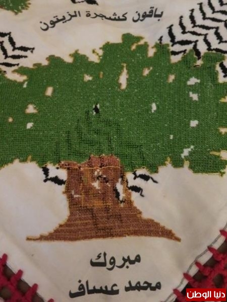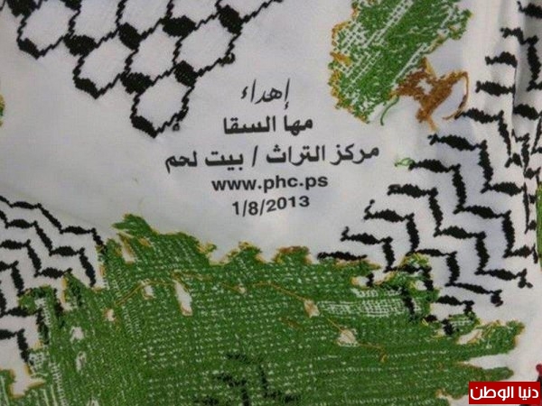 قامت السيده مها السقا مديرة مركز التراث الفلسطيني في بيت لحم بتكريم مطرب العرب محمد عساف الكوفيه الفلسطينية المطرزه ومنقوش عليها اسمه
