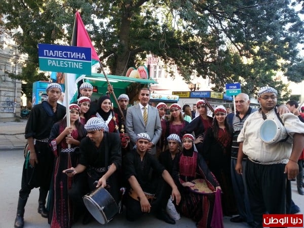 وحملت فرقة الكوفية خلال المهرجان يافطة كتب عليها "دولة فلسطين" باللغتين البلغارية والإنجليزية ورفرف علم فلسطين عاليا بين المشاركين وفي ساحات المدينة.