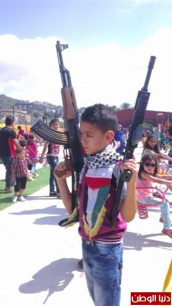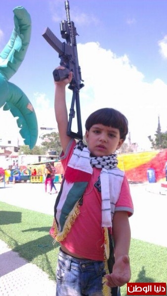 امتزجت اجواء العيد في المخيمات الفلسطينية بارتداء الاطفال للكوفية الفلسطينية وحملهم بنادق متنوعة تجسيدا لحلم العودة الى فلسطين عن طريق الكفاح المسلح