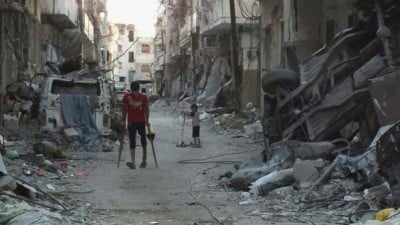 وبعيداً عن العنف، هنا حمص القديمة المحاصرة تعيش مشهداً يختلف بعض الشيء مع تنظيم عراضات وتظاهرات علها تخفف من عبء الحصار الخانق الذي يعيشه المدنيون والمقاتلون على حد سواء.