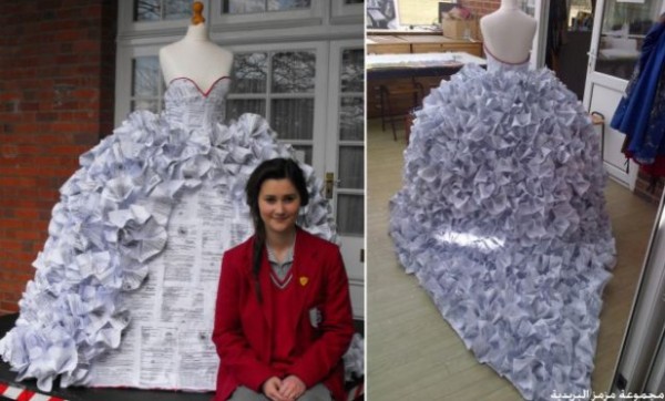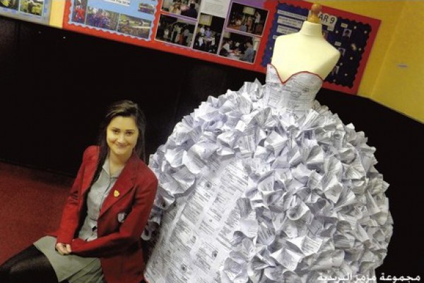 قامت طالبة مدرسية – 15 عاما – بتصميم فستان زفاف مصنوع من أوراق الطلاق وذلك في إطار امتحان الـ GCSE، واستخدمت أكثر من 1500 ورقة في تصنيعه، ومن ثم قامت بنشر صورة الفستان على صفحتها الشخصية على الفيسبوك وهو ما أثار إعجاب أكثر من 40 ألف شخص، وحصلت منهم على طلبات تصميم فساتين الزفاف لهم وبعض الأسئلة عن الفكرة .