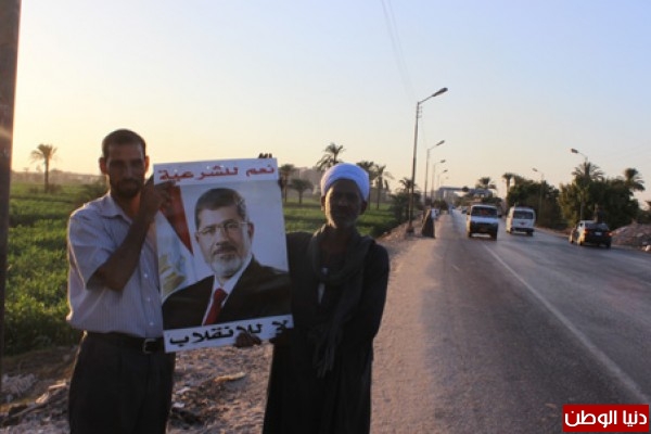 بالصور: سلسلة بشرية بأسيوط لدعم د.محمد مرسي بطول 100 كيلو متر