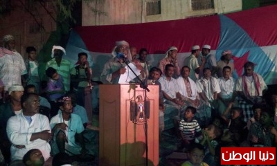 وجاء في كلمته أيضا تأكيدا على إن أبناء وادي حضرموت والجنوب عامة متمسكين بالتحرير والاستقلال وملبيين لدعوات التصعيد الثوري وان ابناء الجنوب عامة خلف سيادة الرئيس علي سالم البيض ورافضين أيضا لمخرجات حوار صنعاء الهزيل .