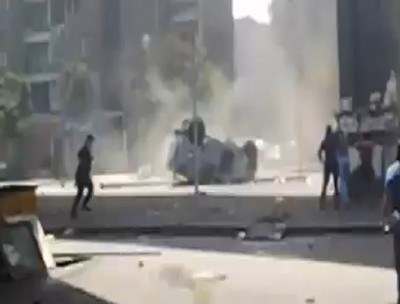 سقطت مدرعة من على اعلى الكوبري اثناء تصديها للمظاهرات التي يقوم بها انصار الرئيس "مرسي".