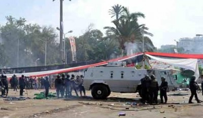 واضافوا أطلقت الشرطة الغاز المسيل للدموع على الحشود. هدمت جرافات مدرعة الحوائط المقامة من أكياس الرمال وأكوام الحجارة.وصلت ياسمين صالح مراسلة رويترز إلى مقر الاعتصام بعد بدء الاقتحام بقليل..