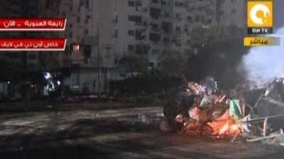وكان مراسل قناة "العربية" من محيط منطقة "رابعة العدوية" بمدينة نصر أفاد بأن الأمور باتت تحت السيطرة وأن هناك التزاماً تاماً بحظر التجوال من قبل الجميع، إلا أنه أشار إلى تجمّع المئات من أنصار الإخوان المسلمين أمام مسجد الإيمان بشارع مكرم عبيد، القريب من منطقة رابعة العدوية، حيث قالوا إنهم سينقلون اعتصامهم إلى هذا المكان، ما يشير إلى إمكانية حدوث صدام قريب مع قوات الأمن. وأضاف أن الإخوان يتهمون قوات الأمن بأنهم قتلوا المئات من أنصار الرئيس المعزول محمد مرسي. وأكد أن من أبرز المقارّ التي تم استهدافها بمحيط رابعة العدوية كانت وزارة المالية، حيث بلغت الخسائر فيه الملايين.