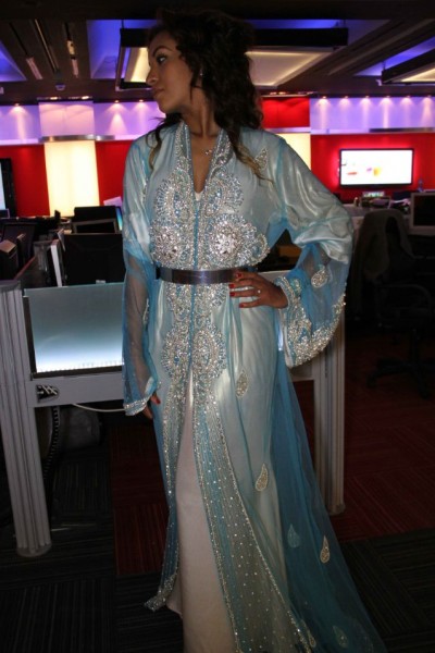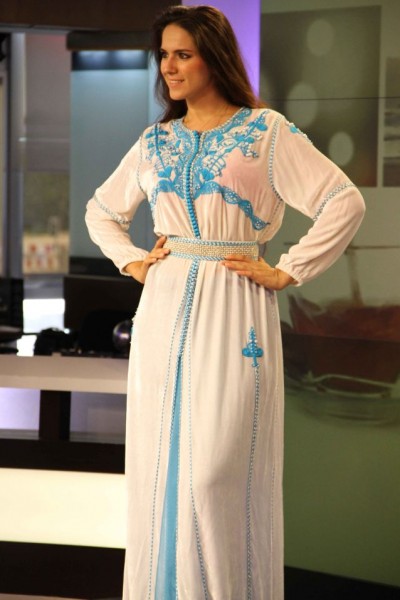 تتميز تشكيلة القفاطين المغربية من المصممة، هند شكري، بدقة التطريز والزخارف، وتتمتع بألوان صيفية مفرحة، وقماش خفيف جدا.