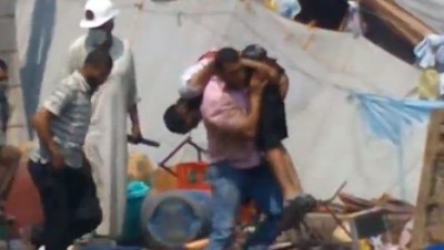 فيديو مؤثر ... لحظة قنص شاب وهو يحمل جثة شاب فى ميدان رابعة العدوية