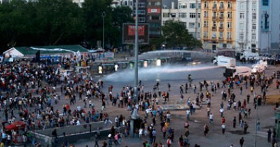 وذكرت محطة "إن تى فى" الإخبارية التركية، اليوم الجمعة، أن قوات الشرطة استخدمت مدافع المياه والقنابل المسيلة للدموع بعد أن ألقى المتظاهرون قنابل المولوتوف والألعاب النارية على الشرطة.