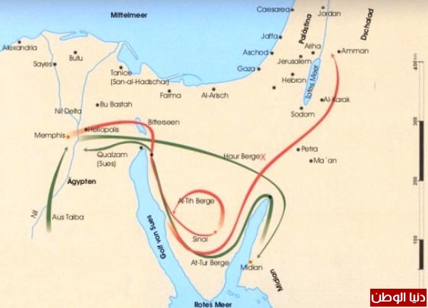 ( سفر تثنية الإشتراع, الفصل ٣٤ ) . فالأرض مطلقة بنص التوراة تعني الأرض المقدسة وإلى هناك لاتعبر تعنى أنها محرمه عليهم كماقص القرأن الكريم ومن خلال ذلك يتأكد أن جبل نبو بكسر النون(نيبو) هو الكثيب الأحمر الذى وصفه رسول الله محمد وصعد عليه موسى عليهم الصلاة والسلام ثم توفي ودُفن بجوار طريق مازال موجود حتي الأن أسفل كثيب نيبو.