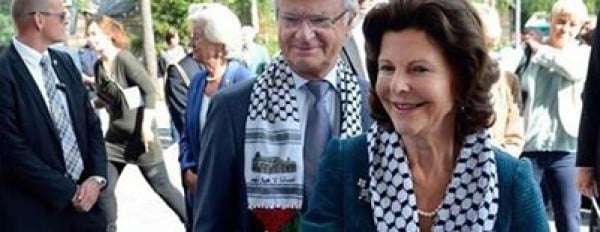شنت جماعات الضغط السويدية اليمينية الموالية لإسرائيل، هجوما حاداً على الملك السويدي كارل غوستاف السادس عشر، وعقيلته الملكة سيليفيا، بعد أن ظهرا في صور تناقلتها الصحف السويدية، وهما يرتديان الكوفية الفلسطينية أثناء زيارة لهما يوم الأربعاء الى منطقة Härnösand.