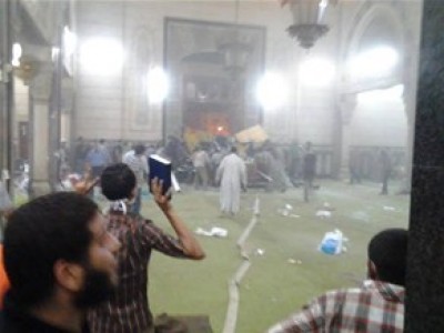 وعرضت قناة او ان تي في الخاصة لقطات لجنود يدخلون المسجد في القاهرة بينما تبث قناة الجزيرة مصر على موقعها الالكتروني لقطات لعسكريين داخل المسجد. ويبدو ان الجنود يتفاوضون مع المتظاهرين ليغادروا المسجد.