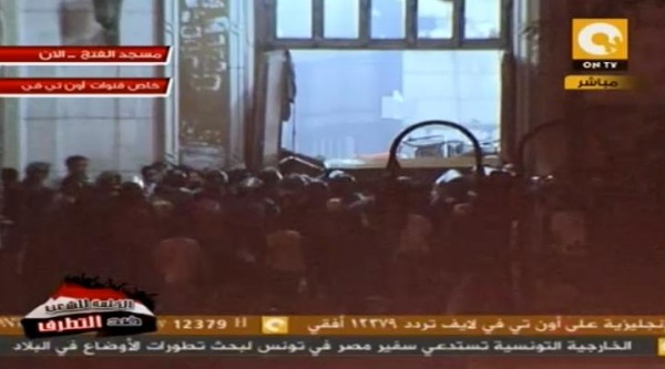 بعد الحصار الذي فرضته القوات الامنية التابعة لوزارة الداخلية المصرية علي المتواجدين في مسجد الفتح في ميدان رمسيس وسط القاهرة
