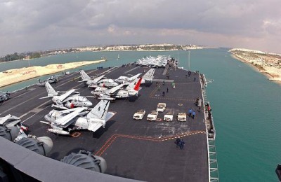 وحسب القيادة المركزية الأمريكية المسؤولة عن منطقة الشرق الأوسط في البحرين، فهناك ما بين 35 إلى 45 سفينة تابعة للأسطول البحري الأمريكي تمر كل عام عبر قناة السويس، بما في ذلك المجموعات الضاربة لحاملات الطائرات، وقد منحت مصر أمتيازا للسفن الحربية الأمريكية بالمرور عِبر القناة من دون تأخير.