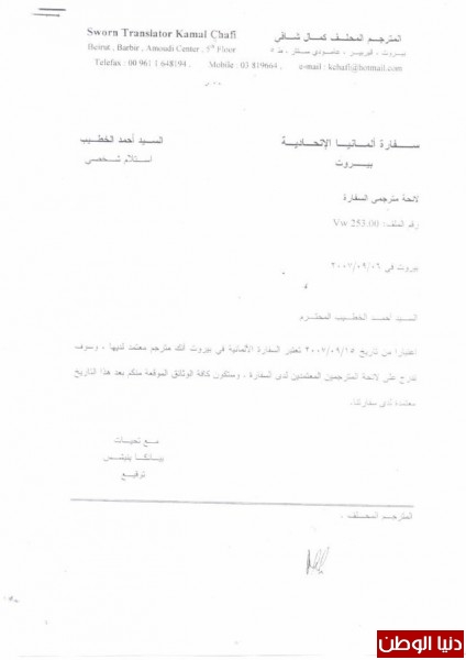 وللاسف الشديد وبعد كل هذا العمل في المانيا لم اجد عملاً في لبنان لمدة أربع سنوات . وفي عام 2002 عملت مع السفارة الالمانية مخلص معاملات للعرب حتى عام 2007 . وفي 15 ايلول 2007 حصلت على دبلوم مترجم معتمد من السفارة الالمانية بتاريخ 6-9-2007.