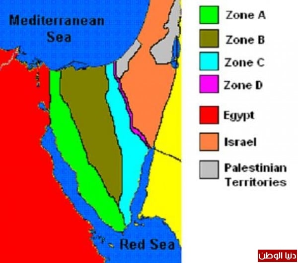 حسب الاتفاقيات فان شبه جزيرة سيناء قسمت إلى مناطق تتوزع فيها الحشود العسكرية بدرجات متفاوتة، كما موضح في الخريطة: