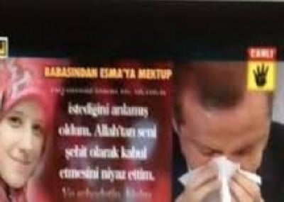 بكى رئيس الوزراء التركي، رجب طيب أردوغان، خلال لقاء تليفزيوني، بإحدى القنوات المحلية التركية، نتيجة تأثره الشديد لدى إصغائه لرسالة الدكتور محمد البلتاجي، القيادي بحزب الحرية والعدالة، الذراع السياسية لجماعة الإخوان المسلمين، لابنته أسماء، التي لقيت مصرعها خلال فض قوات الأمن اعتصام ميدان رابعة العدوية. وأشار «أردوغان»، خلال اللقاء إلى أن صورة أبنائه مرت أمامه خلال إصغائه للرسالة، وقال: «أنا مررت ببعض ما جاء في رسالة البلتاجي لابنته أسماء، بحكم عملي، وانشغالي الشديد، أعود إلى البيت متأخرا جدا، وغالبا ما تصل الساعة الواحدة أو الثانية بعد منتصف الليل، وفي الغالب يكون أبنائي نائمين، وفي إحدى المرات علقت ابنتي ورقة على باب غرفتي كتبت فيها (هل منحتنا ليلة من وقتك؟)، نحن لا نملك وقت فراغ نمنحه لأبنائنا». وتابع: «الشهادة شيء مختلف، أسماء غادرت الدنيا دون أن تشبع منها، ولكن روحها ارتقت عاليا، أتمنى أن يمثل موقف أبيها درسا لكل المسلمين في العالم، أنا لا أتحدث معكم الآن بصفة رئيس الوزراء، ولكن بصفة المواطن، رجب طيب أردوغان». وجاء رد فعل «أردوغان» بعدما رفع علامة النصر بأصابع يده الـ4 في إشارة إلى ميدان رابعة العدوية، الذي شهد سقوط مئات الضحايا أثناء فض قوات الأمن اعتصام أنصار مرسي، في الكلمة التي ألقاها «أردوغان» في مدينة «بورصة» غرب تركيا، ضمن مراسم بدء العمل بمجموعة مشاريع لإعادة الإعمار تأتي ضمن خطة الحكومة التركية لتطويرالمباني في عموم البلاد ضمن خطة التحول المدني. من جانبه، أشار حزب الحرية والعدالة، في صفحته على «فيس بوك»، إلى بكاء «أردوغان»، معتبرًا أنه «يبكي الآن في برنامج تليفزيوني تركي على الهواء، بسبب مقتل آلاف المصريين »، حسب قوله. وكان «البلتاجي» كتب رثاء لابنته أسماء، الإثنين الماضي، قال خلاله إنه لم يحضر وداعها الأخير إلا لاستكمال مسيرة الثورة حتى تنتصر وتحقق أهدافها، «لا خوفا على أجل ولا من سجن ظالم وإنما حرصًا على الرسالة التي قدمت روحها من أجلها».