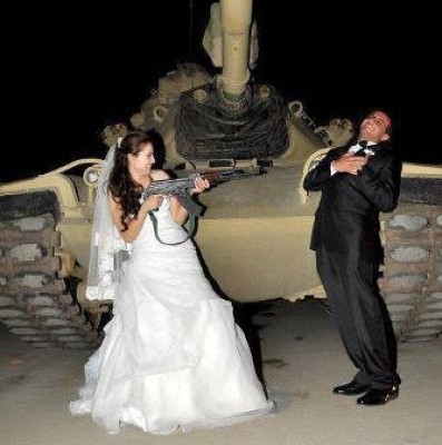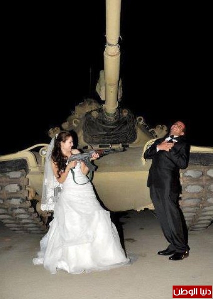 أثارت صورة انتشرت على موقع التواصل الاجتماعي الفيسبوك لعروس وعريس يقومون بالاحتفال بزواجهم امام دبابة مصرية تابعة للجيش المصري .