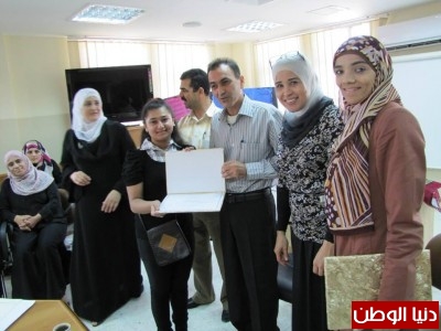 و حضر التكريم كل النائب الفني بسمات سالم و النائب الاداري خضر ابو بشارة بالإضافة الى منسقة مبادرة الهام فلسطين في تربية اريحا ميسون سلامة ورئيس قسم الادارات المدرسية سكينة ياسين و منسقة مشاريع المواطنة المشرفة ميساء براهمة