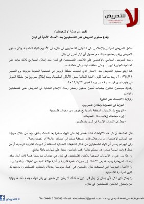 2- ندعو وسائل الإعلام اللبنانية إلى الكفّ عن التحريض ضدّ اللاجئين الفلسطينيين.